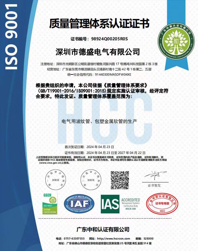 深圳市德盛電氣有限公司榮獲ISO9001質(zhì)量管理體系認(rèn)證,邁向品質(zhì)管理新高度